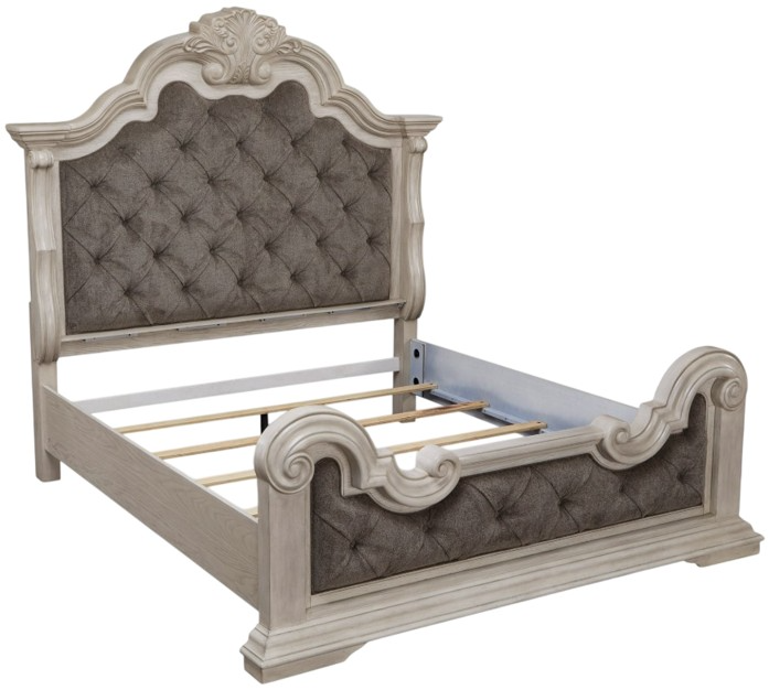 Inspired by the grandeur and grace of European traditional style, this opulent king upholstered panel bed is nothing short of stunning. Ornate sculptural details and button-tufted fabric on the impressive headboard and footboard are sure to make a sophisticated statement in your restful retreat.Read More