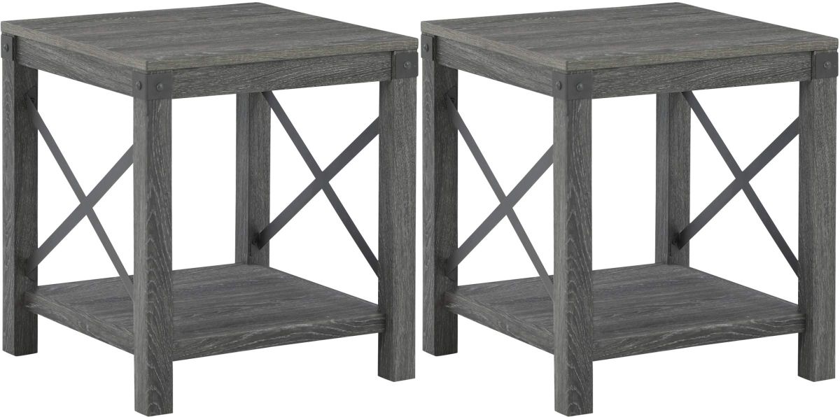 Open the door to modern farmhouse style with this square end table set. The beautiful woodgrain look and classic crossbuck metal accents are a cool touch, while the lower shelf provides surface space for fashionable home accessories.Read More