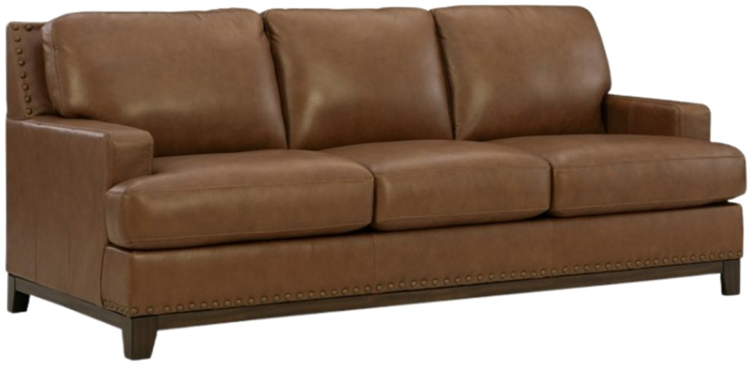 Effortlessly blending contemporary and classic elements for a truly timeless look, this sofa offers a fresh take on transitional style. A robust silhouette is coupled with skillfully matched leather and faux leather upholstery, while nailhead trim adds a touch of subtle sophistication. Pleasingly plump cushions with jumbo stitching provide exceptional comfort.Read More