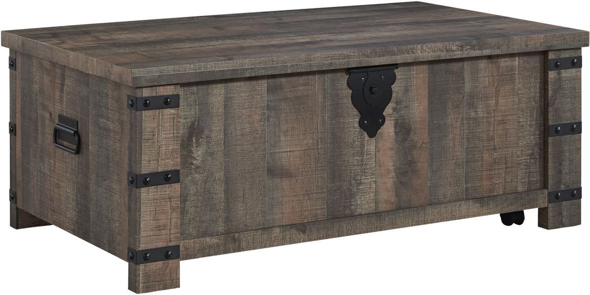 Keep your aesthetic chic and approachable with this charming coffee table. The piece has an effortless beauty, with a replicated aged barn wood pattern and matte black metal accents adding vintage-inspired elegance. Combining elements of fashion and function, the lift-top design offers a table area for dinner and a movie or working from home on your laptop.Read More