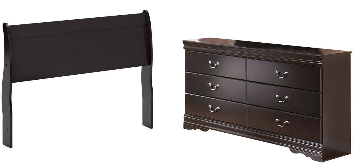 This bedroom set with sleigh headboard and dresser is the epitome of traditional decor. Louis Philippe-style moulding dates back to the mid-19th century when furnishings were lavish yet somewhat simple. Luxe finish adds a slightly modern touch. Smooth-glide drawers beautifully accommodate your wardrobe. Includes headboard and dresser (mirror not included).Read More