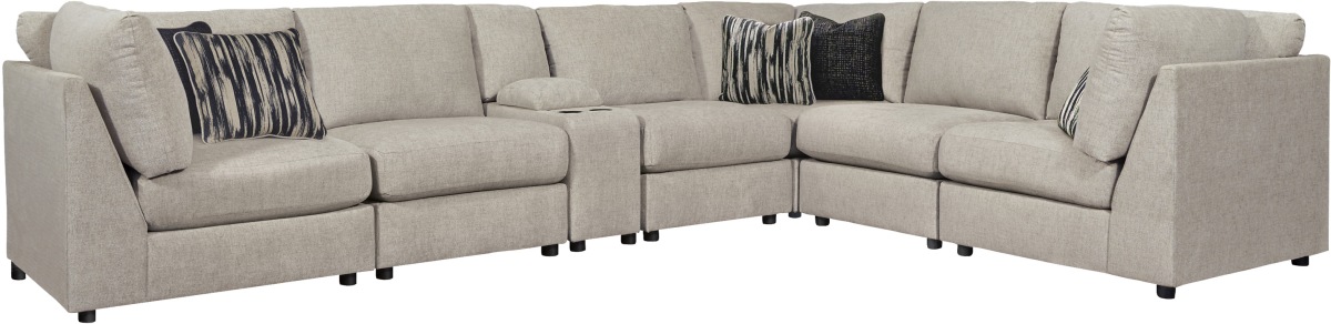 Its casual-contemporary aesthetic and modular design, this sectional makes way for high style and indulgent comfort. Rest assured, the thickly cushioned storage console includes not only a pair of cup holders, but also a USB port to keep you powered up while you unplug. Plush-to-the-touch chenille-feel upholstery in bisque beige is pure delight.Read More