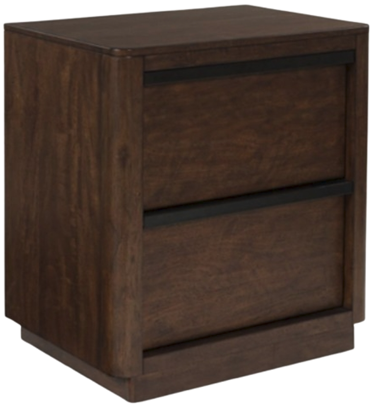Casual contemporary styling with a decidedly modern vibe. This nightstand is warm and inviting with a rich dark brown finish, adorning your restful retreat with on-trend elegance. Full-length metal pulls in a matte black finish add a subtly cool touch to spacious bedside storage drawers. What a simply stunning way to achieve the bedroom of your dreams.Read More