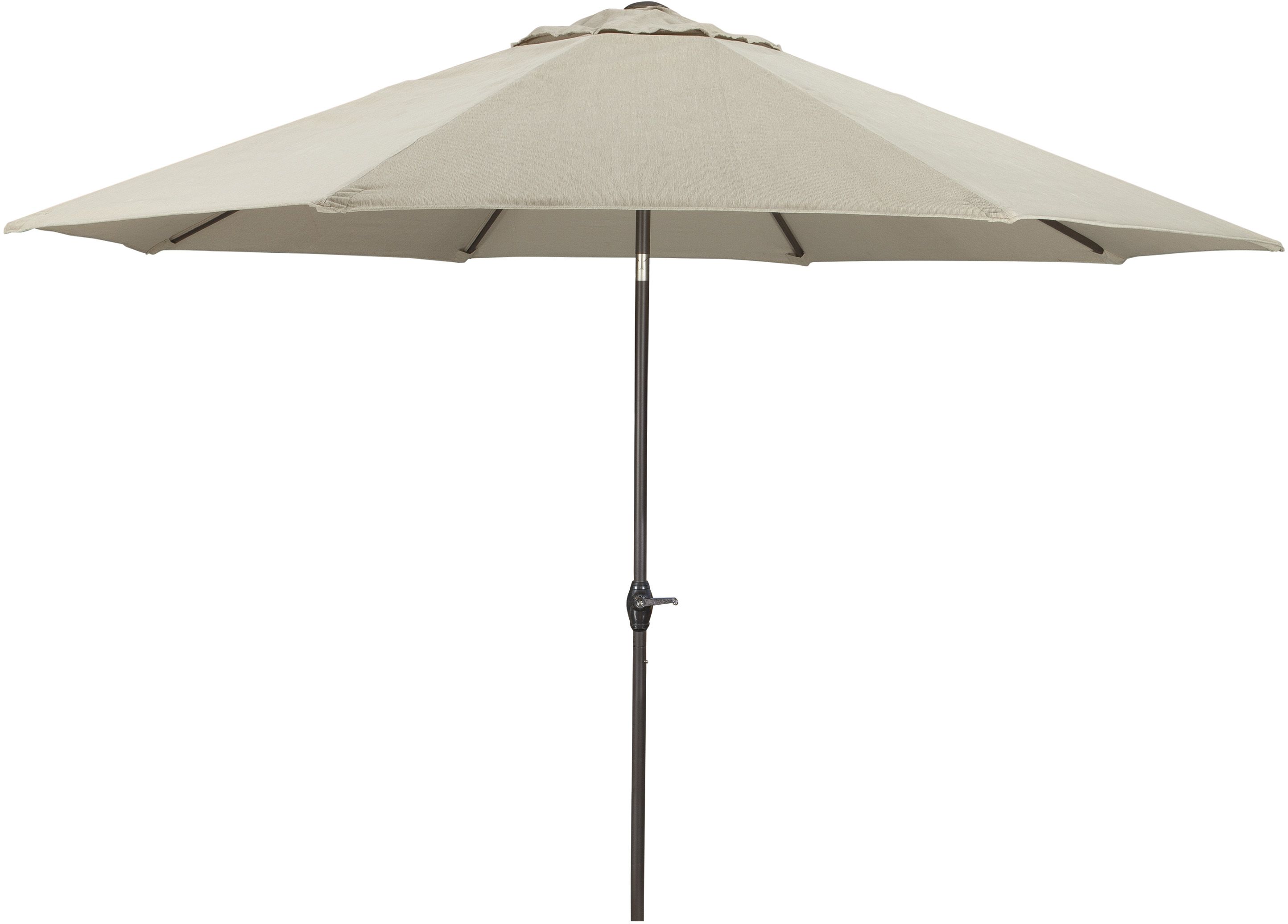 With the 11' octagonal patio umbrella, a linen canopy and dark brown tilting frame shade you from the sun all day. High-performing Nuvella® canopy blocks out harmful UV rays, while the easy auto tilt frame follows the arc of the sun. A smooth hand crank opens and closes the umbrella. Umbrella base sold separately.P000-992 must be paired with P000-996B dark brown umbrella base.Read More