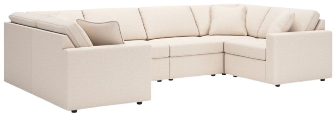 Includes 6 Modular Pieces: Seft-arm facing corner chair, 2 armless chairs, 2 wedges and right-arm facing corner chair