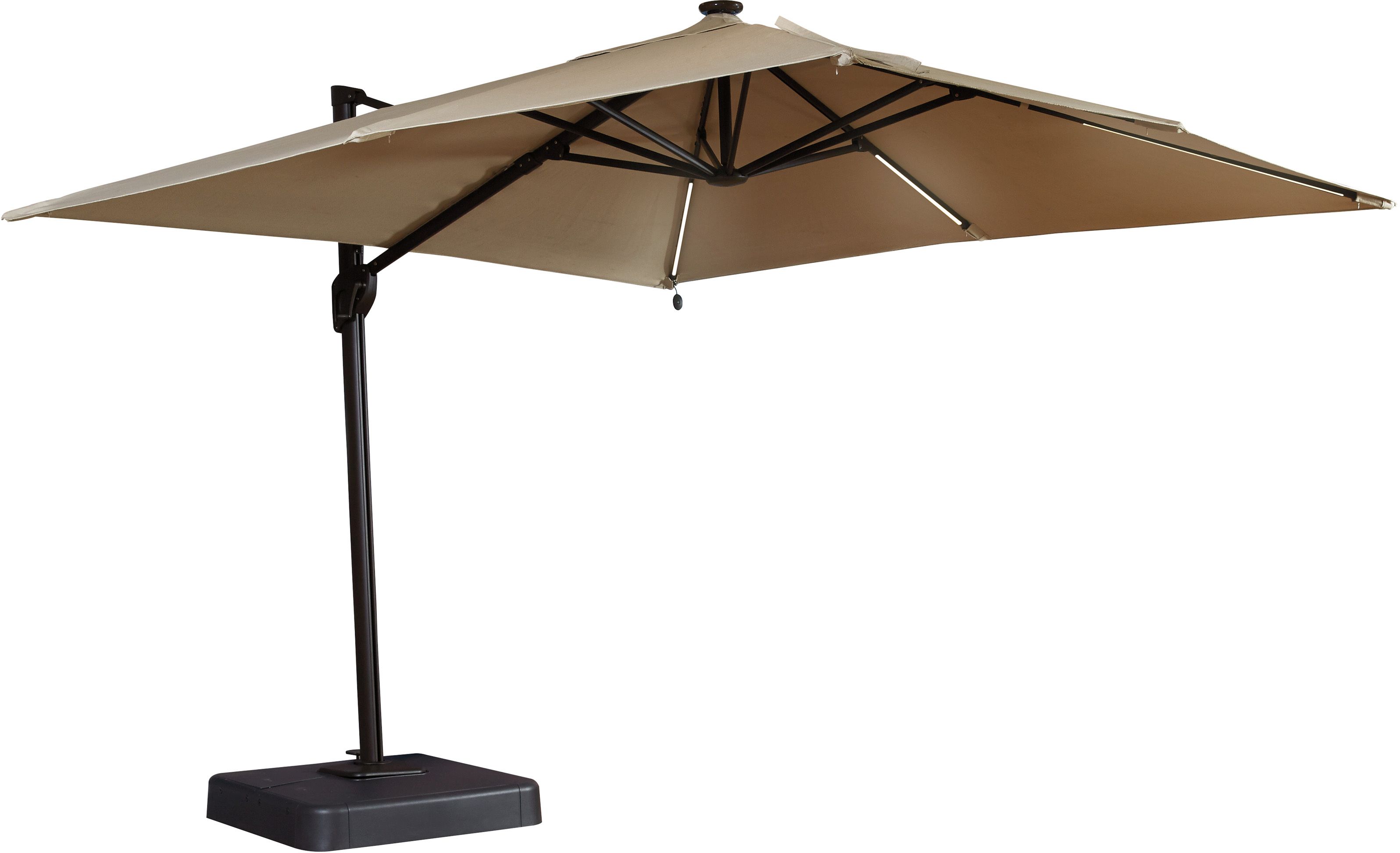 Signature Design by Ashley® Oakengrove Large Cantilever Umbrella Includes 10' square umbrella and resin base Nuvella™ 100% solution-dyed polyester canopy blocks the sun and remains colorfastRead More
