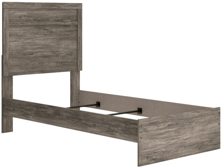 With its clean-lined look and modern attitude, this panel bed is a fresh style awakening. A warm gray hue over replicated oak grain easily complements other furniture finishes. The simple, unadorned profile is given depth and dimension with the addition of plank style molding on the headboard.Read More