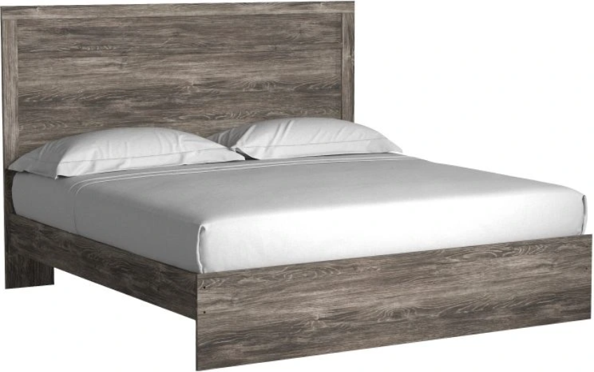 With its clean-lined look and modern attitude, this king panel bed is a fresh style awakening. A warm gray hue over replicated oak grain easily complements other furniture finishes. The simple, unadorned profile is given depth and dimension with the addition of plank-style moulding on the headboard—proof that beauty lies in the details.Read More