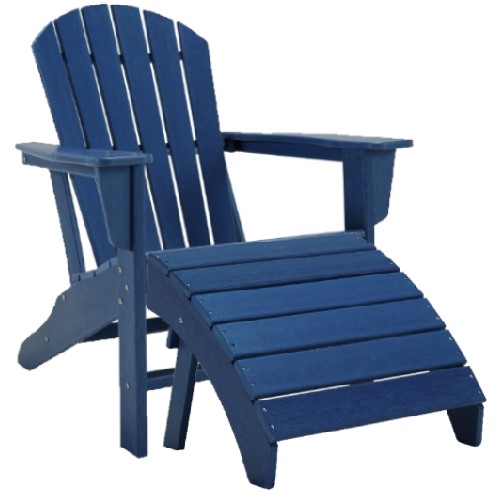 Add cottage-quaint charm to your outdoor oasis with this Adirondack chair and ottoman in blue. Made of MEGA TUFF™ high-density polyethylene material, it’s sure to weather the seasons beautifully. Designed to shed rainwater, the chair’s slatted styling with shell back shaping provides exceptional form and function.Read More